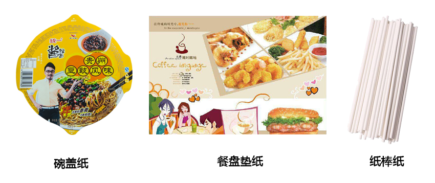 產品克重范圍25-80g/m2,有白色、本色等,具有強度高,印刷效果好,防潮、防粘、防霉等特點,分內包裝和外包裝兩大類,多用于制作食品袋、餐盤墊紙、干燥劑袋、酒精干濕包等,覆膜和鋁箔后可作為桶裝大碗面碗蓋使用。